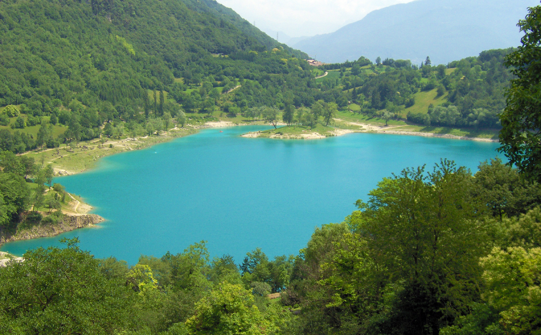 Di un intenso color turchese e dalla forma perfettamente rotonda è il Lago di Tenno, chiamato anche “lago azzurro”. Ci siamo spostati in Trentino, alle pendici del Monte Misone. La curiosità di questo lago è quella di avere un’isola considerata biotopo, che si collega alla terra da una strada di sassi. Venite qui a fare un bel picnic nell’area dedicata.